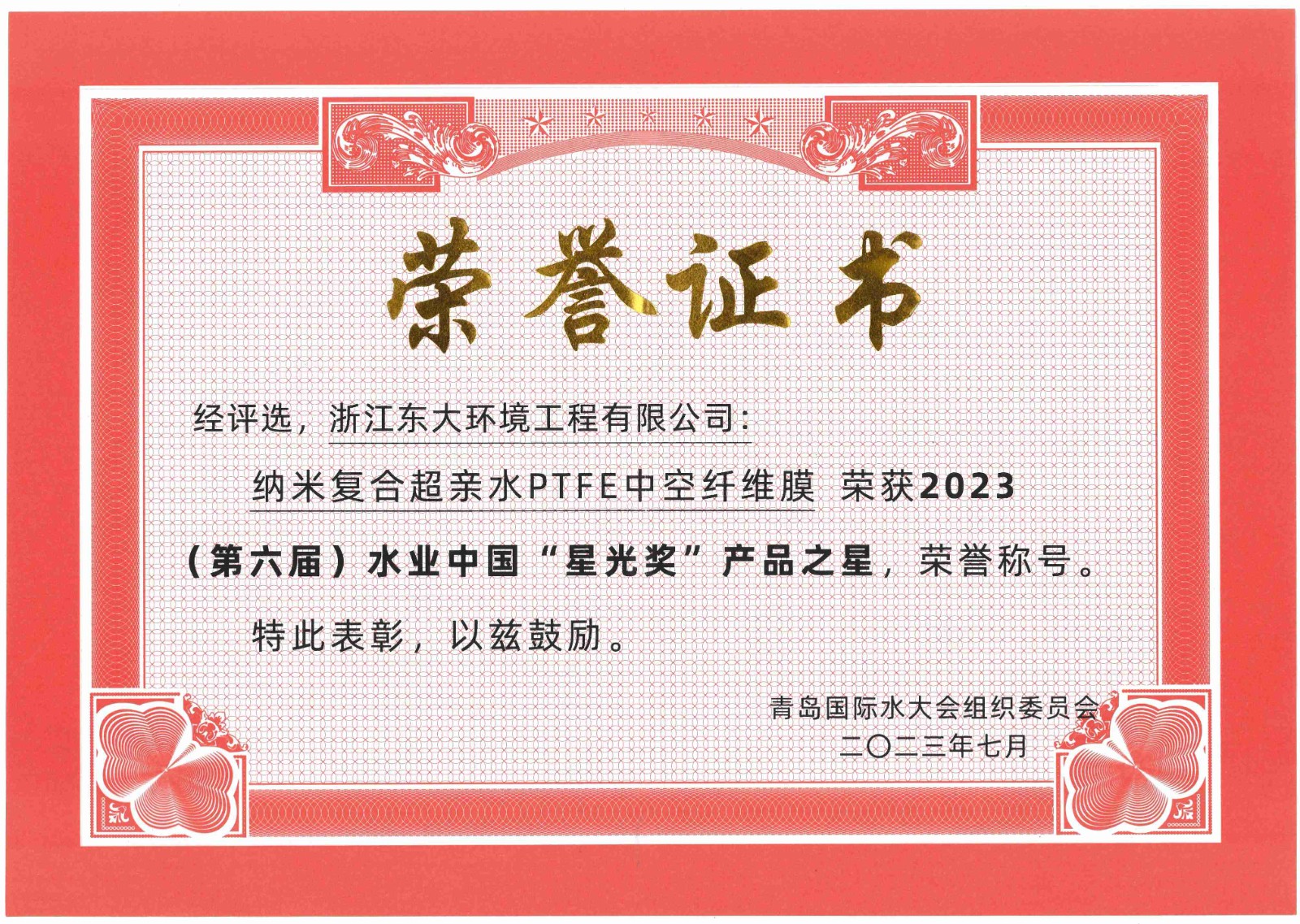 2023青島國際水大會&水展——東大環(huán)境參展并獲得榮譽獎項