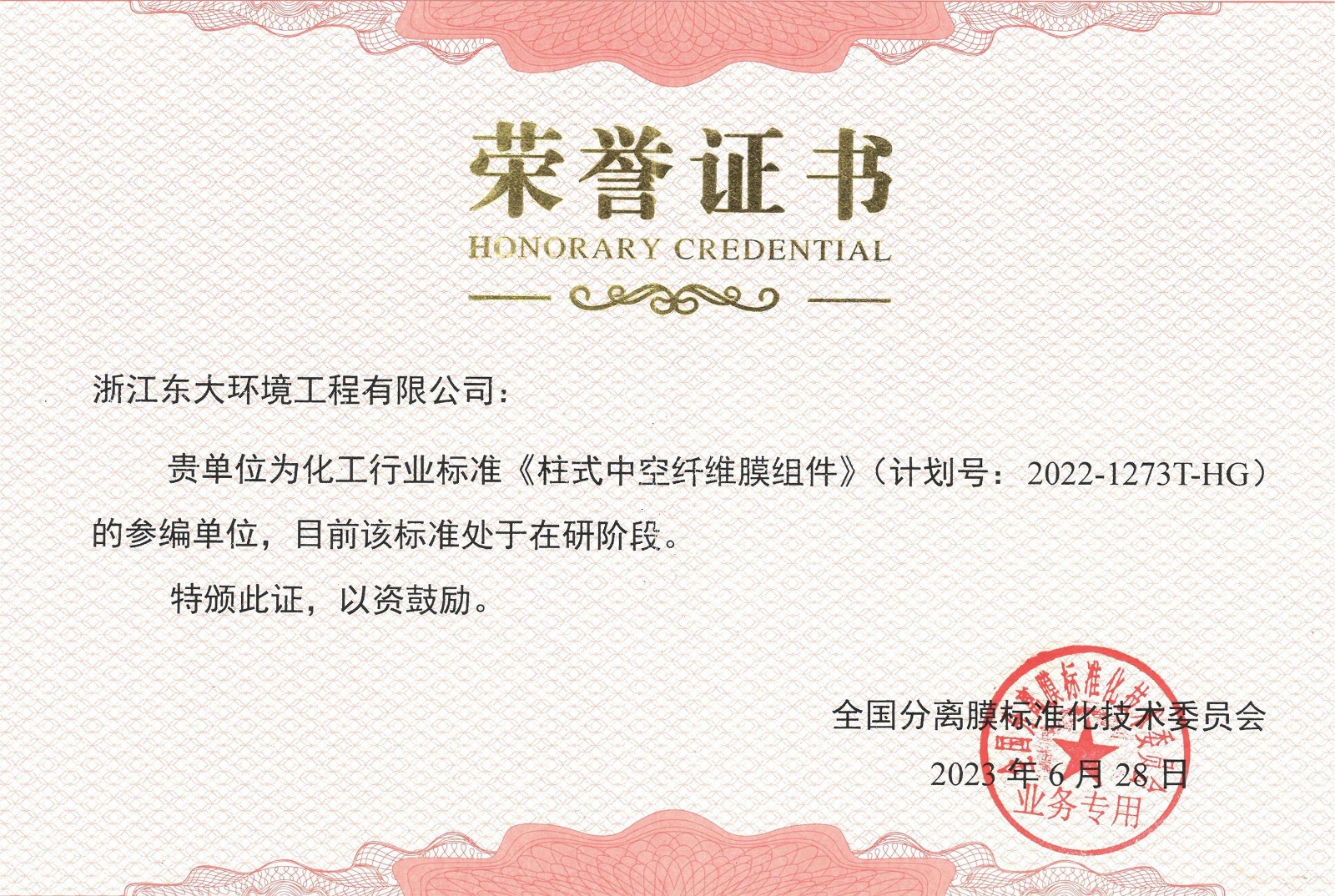 化工行業(yè)標準參編證書